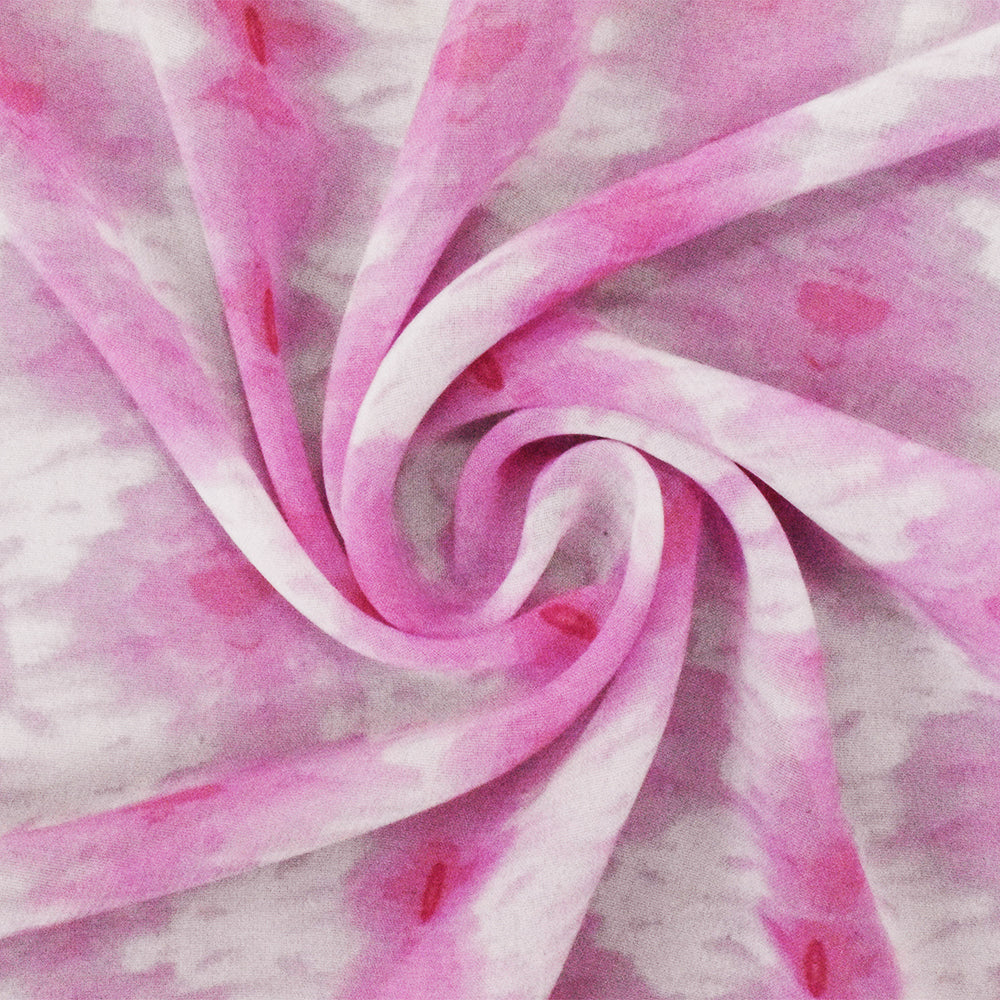 Pink-White Abstract Printed Poly Chiffon Woven Fabric