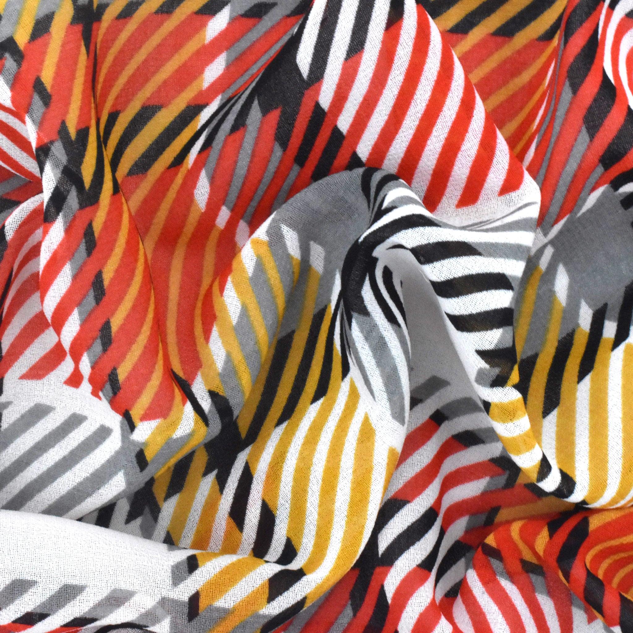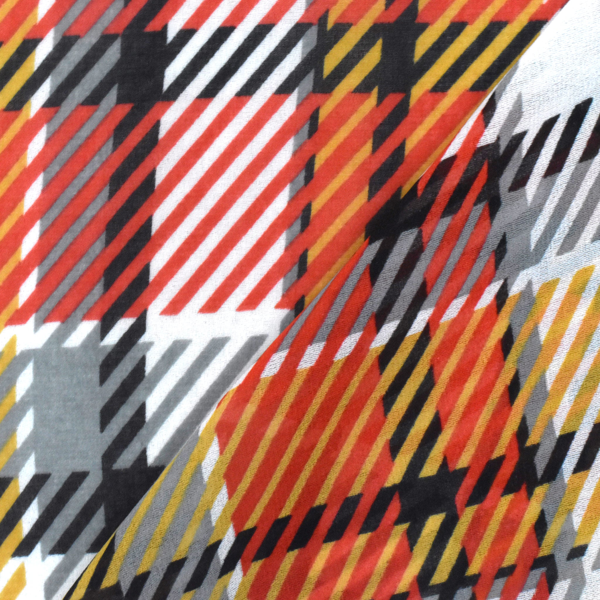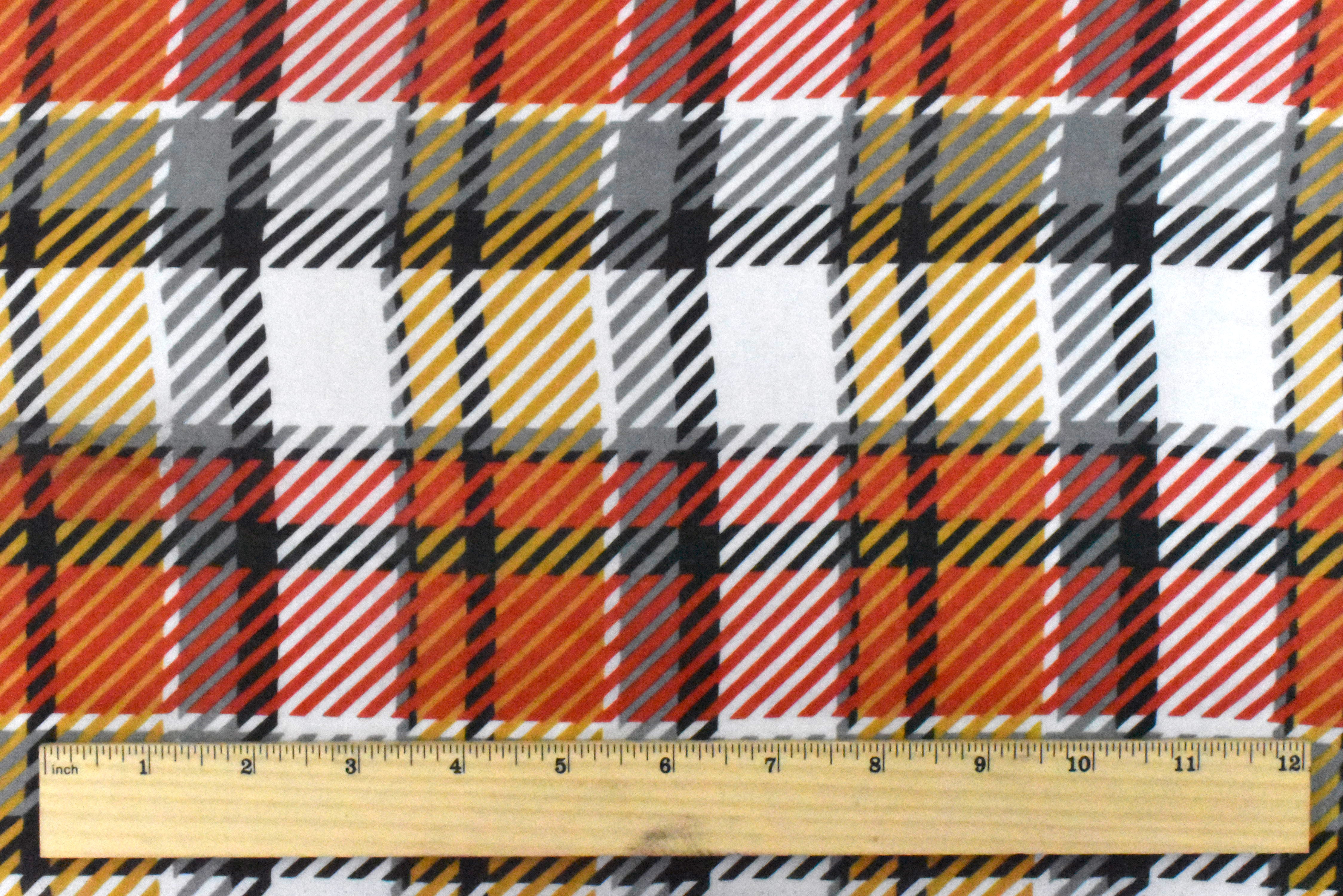 Pure Red-Dijon-Multi Plaid Printed Poly Chiffon Woven Fabric
