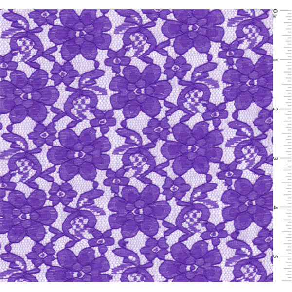 Solid Purple Allover Lace Fabric Suitable for Apparel, Home Decor, and Special Occasions 100% Polyester 60" Wide Machine Washable