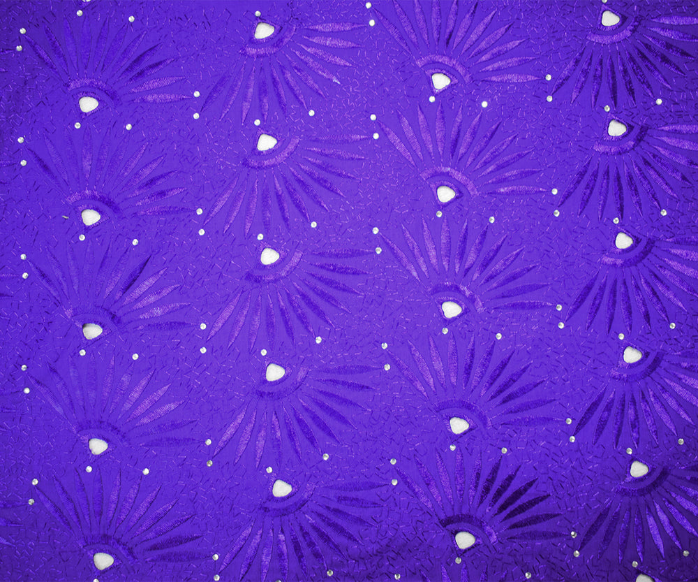 Purple Poly-Cotton Embroidered Abstract Scallop Rhinestone Woven Fabric
