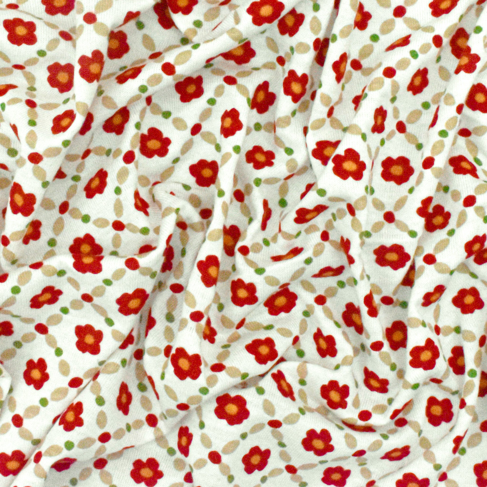 Red-Beige-Multi Floral Trellis Printed Jersey Knit Fabric