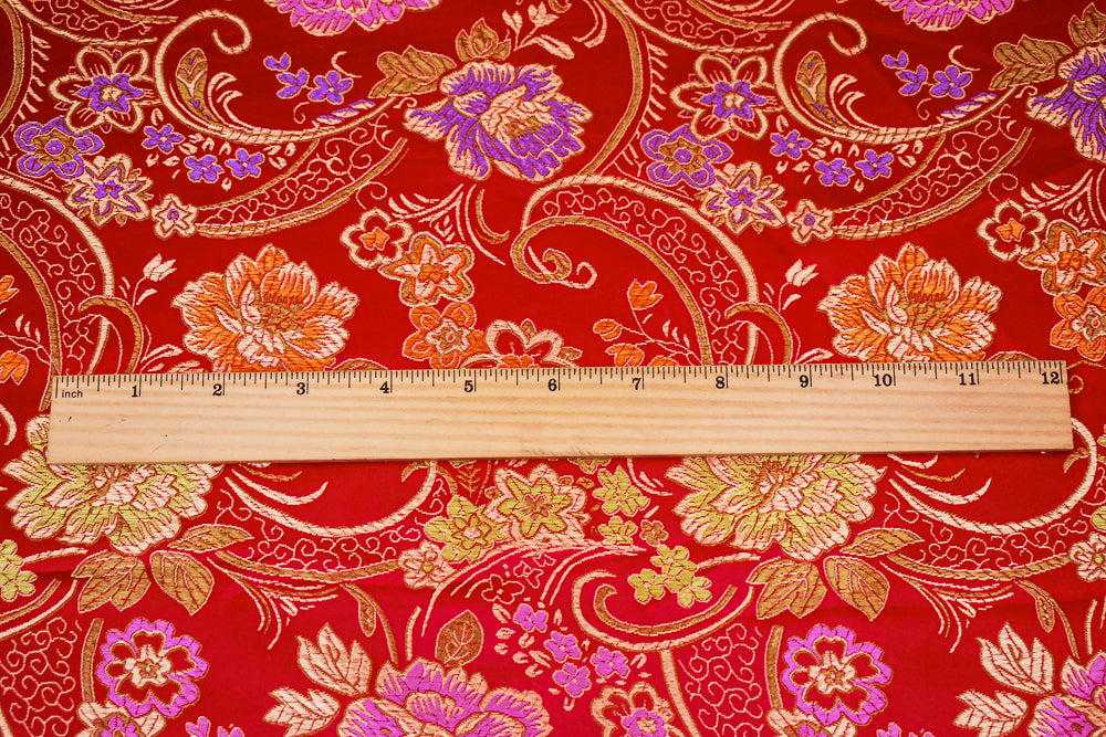 Red-Beige-Multi Polyester Floral Chinese Brocade Woven Fabric