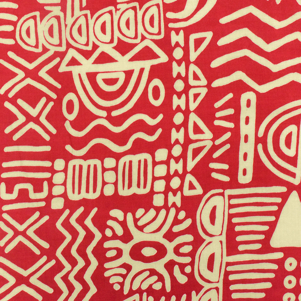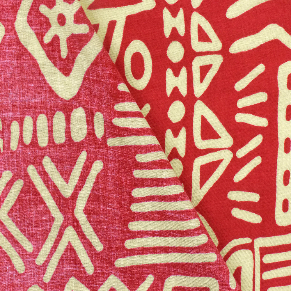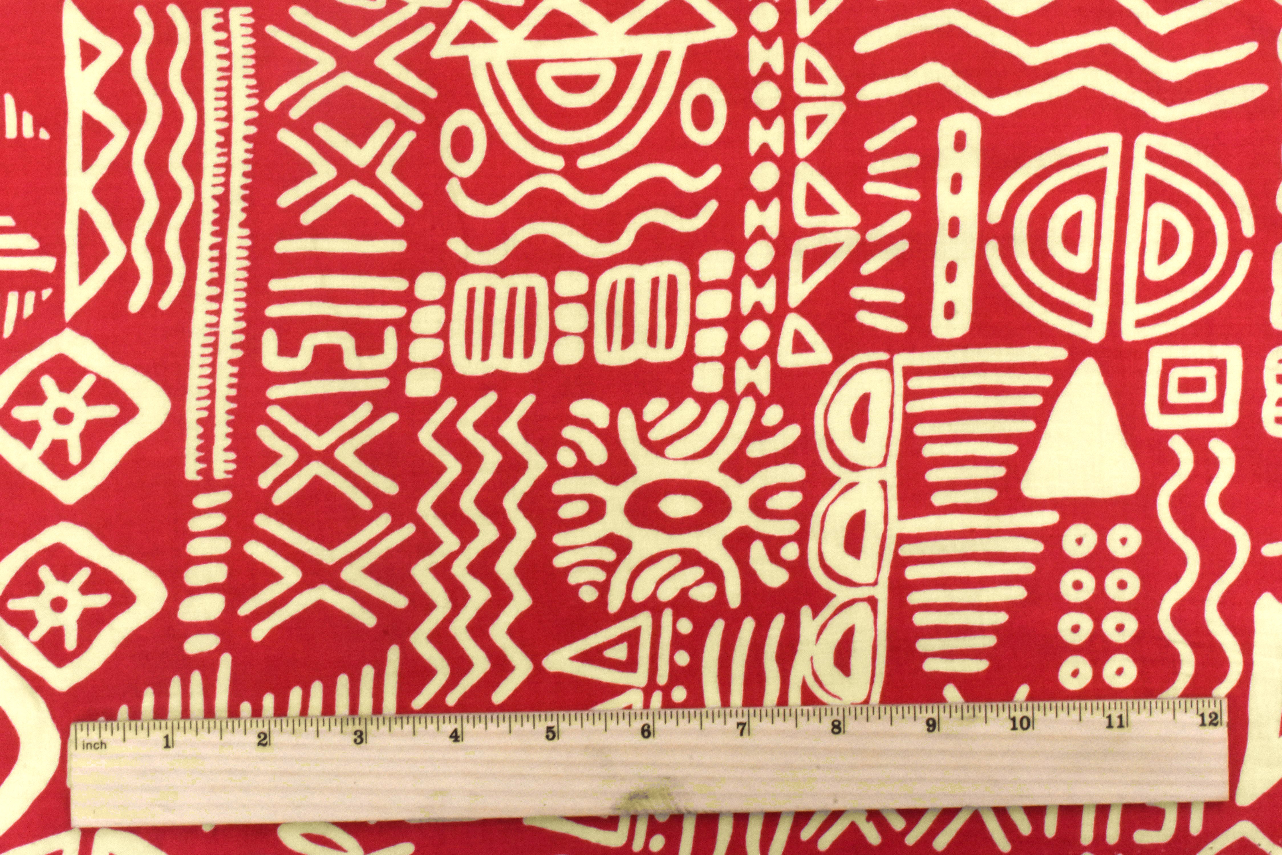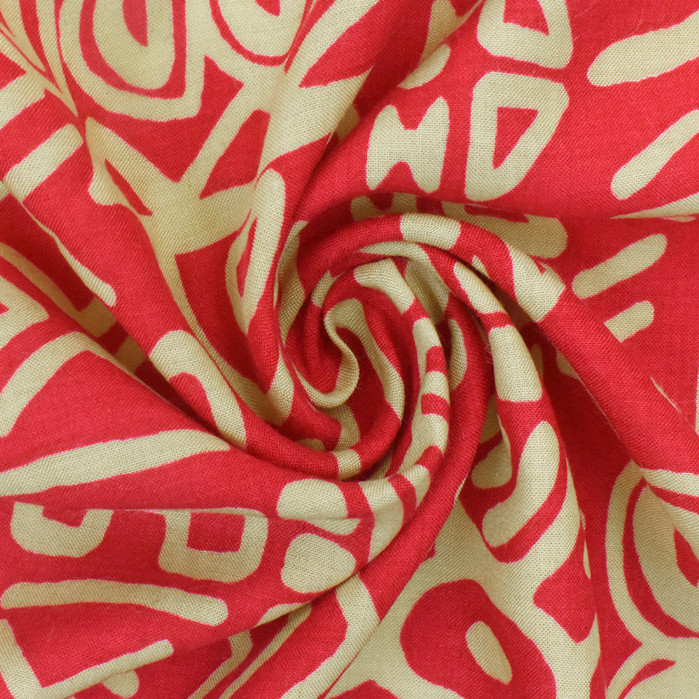Red-Beige Tribal Symbols Printed Challis Woven Fabric