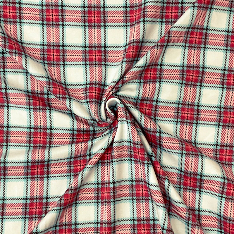 Red-Multi Poly Stretch Plaid-Check Print DB Jersey Knit Fabric