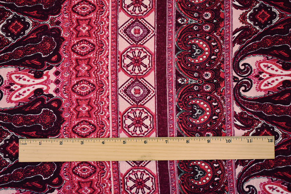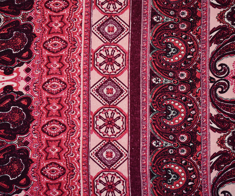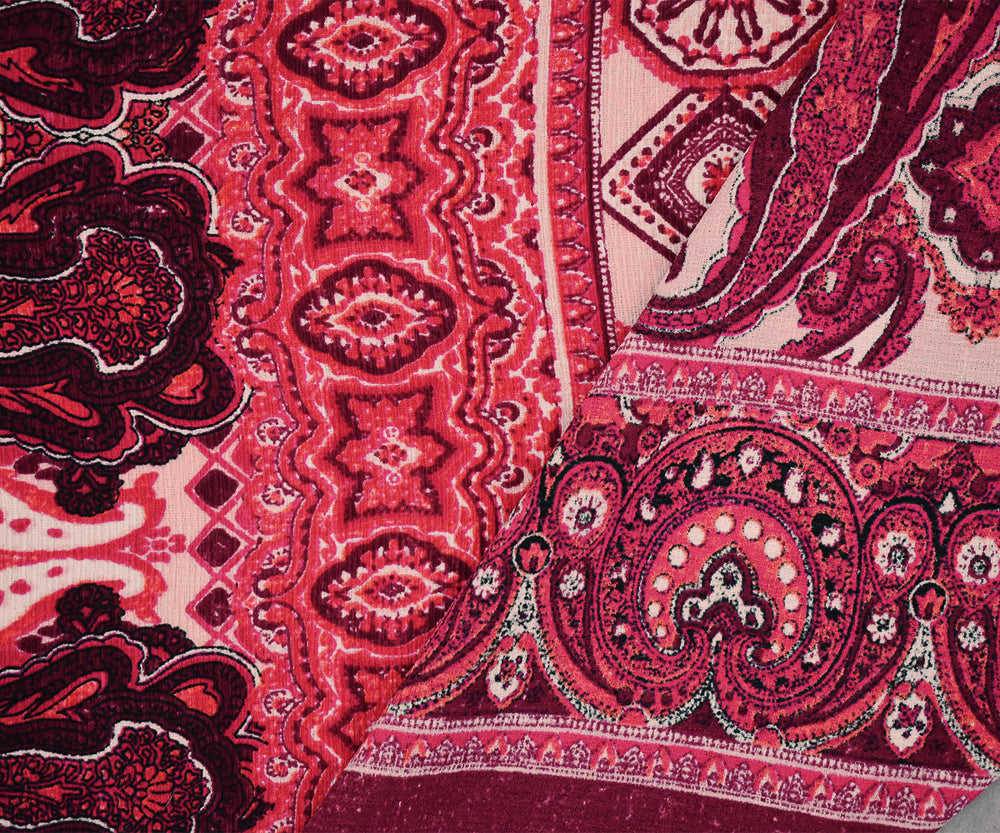 Red-Pink-Multi Poly Paisley Baroque Printed Crepe Georgette Woven Fabric