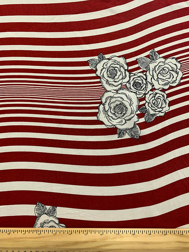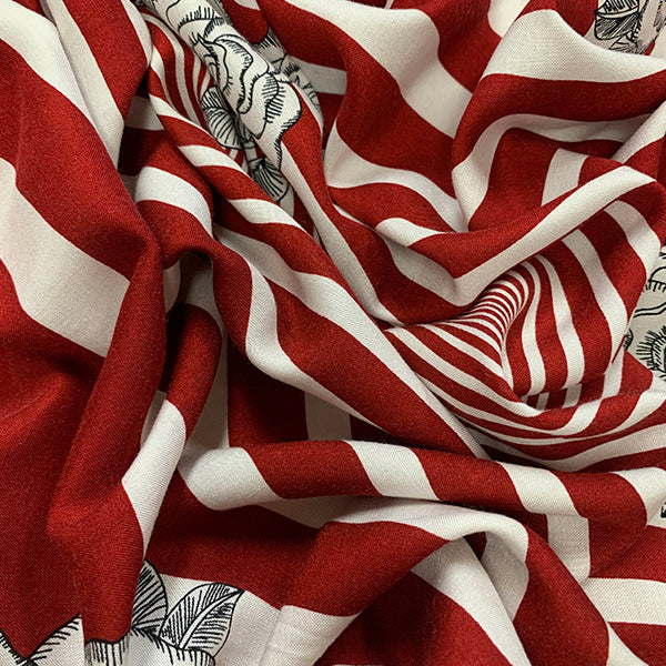 Red Rose Stripe Print Rayon Challis Fabric