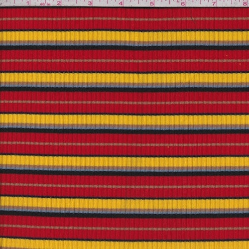 Red/Yellow/Sky Stripe Poor Boy Rib Knit Fabric