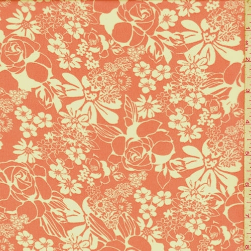 Salmon/White Floral Toss Chiffon Fabric