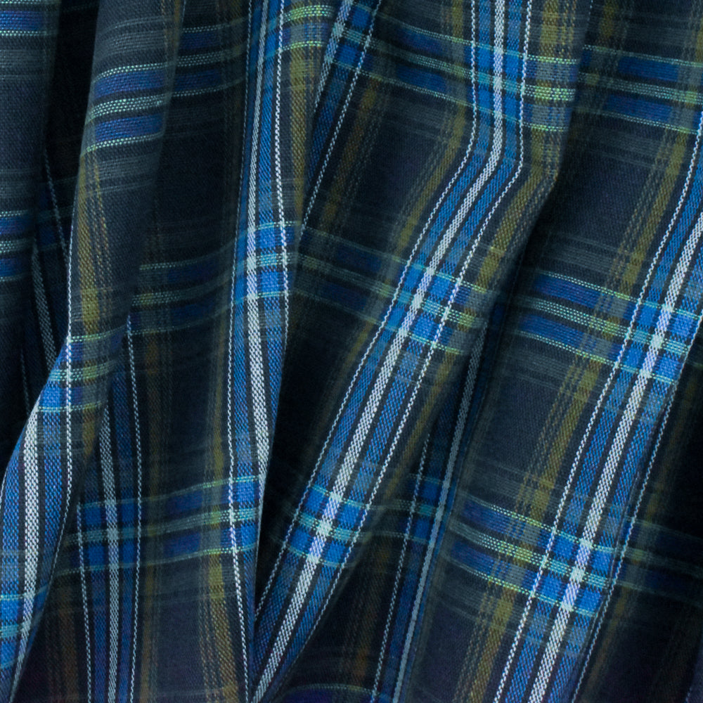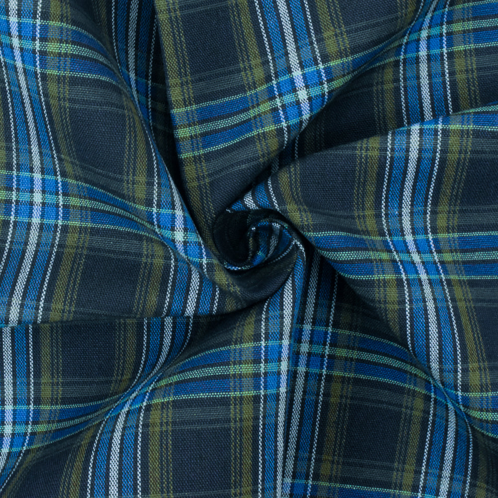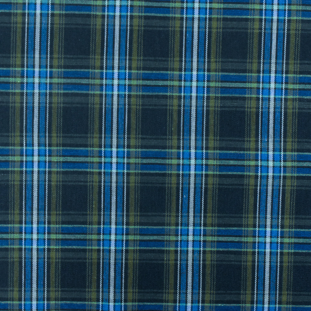 School Blue-Green-Multi Plaid Poly Cotton Madras Woven Fabric