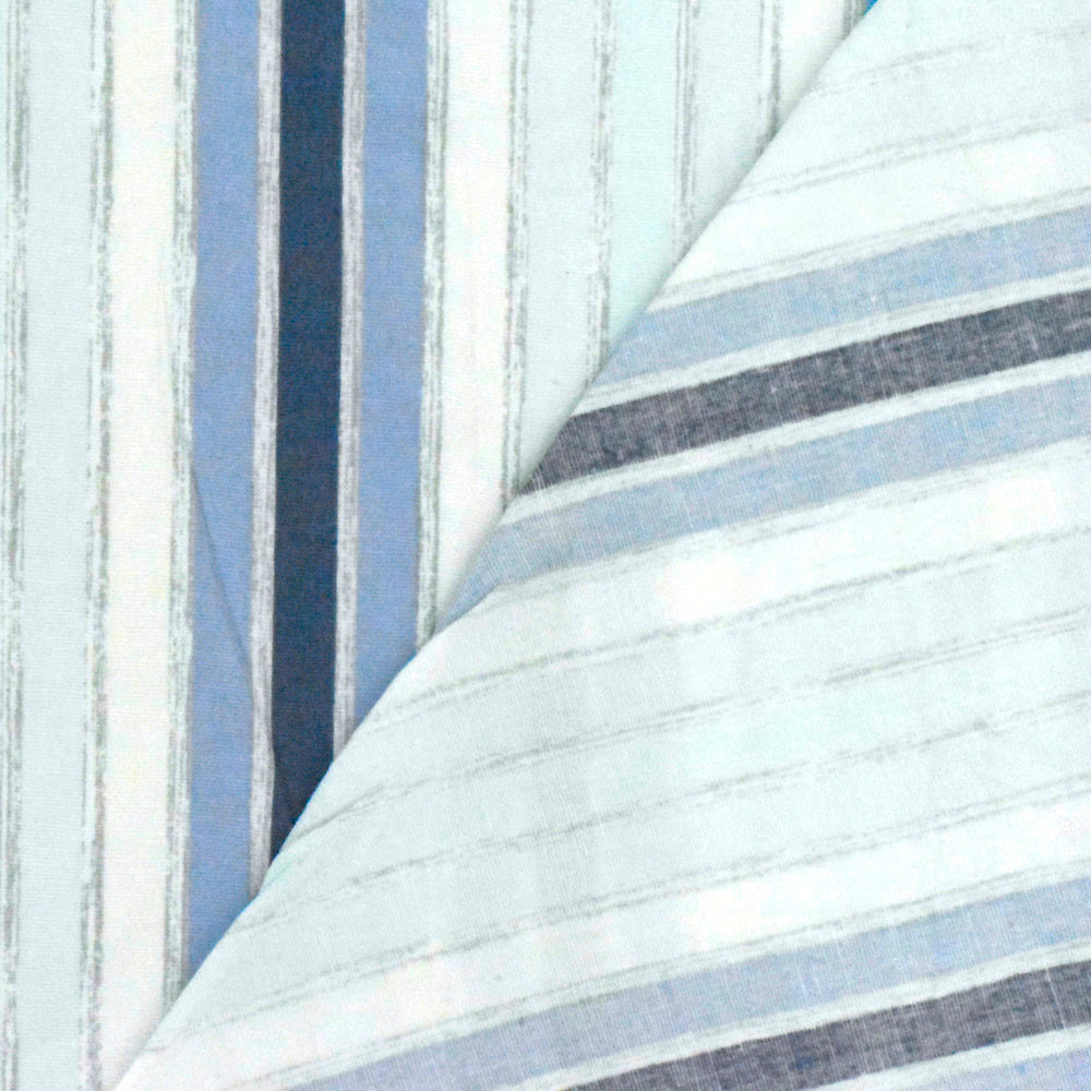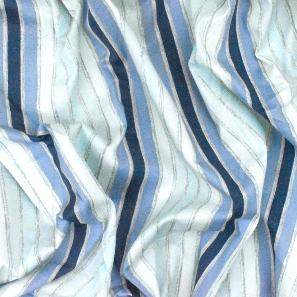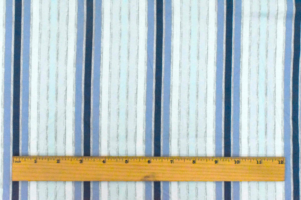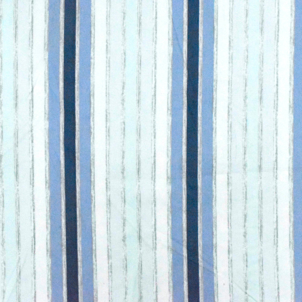 Slight Blue-White-Multi Stripe Printed Stretch Cotton Poplin Woven Fabric