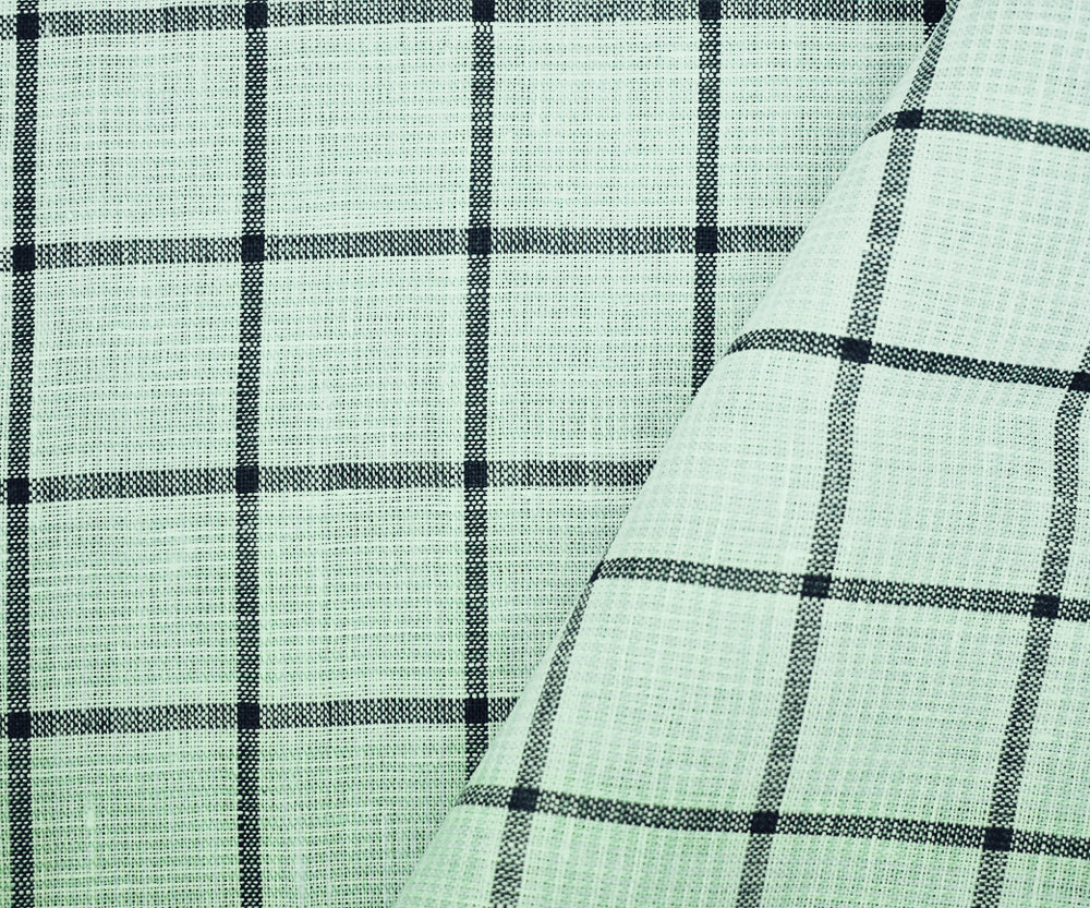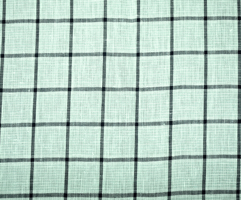 -150 gsm Spence Bryson Katesbridge 100% Linen yarn dyed gridded check-like pattern woven with a soft sanforised finish. Line if needed. Made in Ireland.