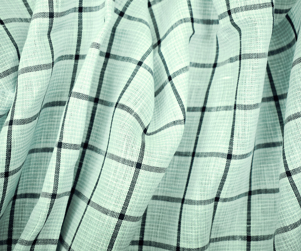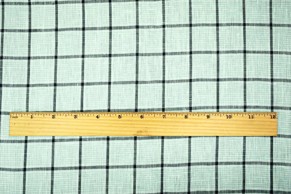 Teal-Gray-White Spence Bryson Grid Check Irish Linen Woven Fabric
