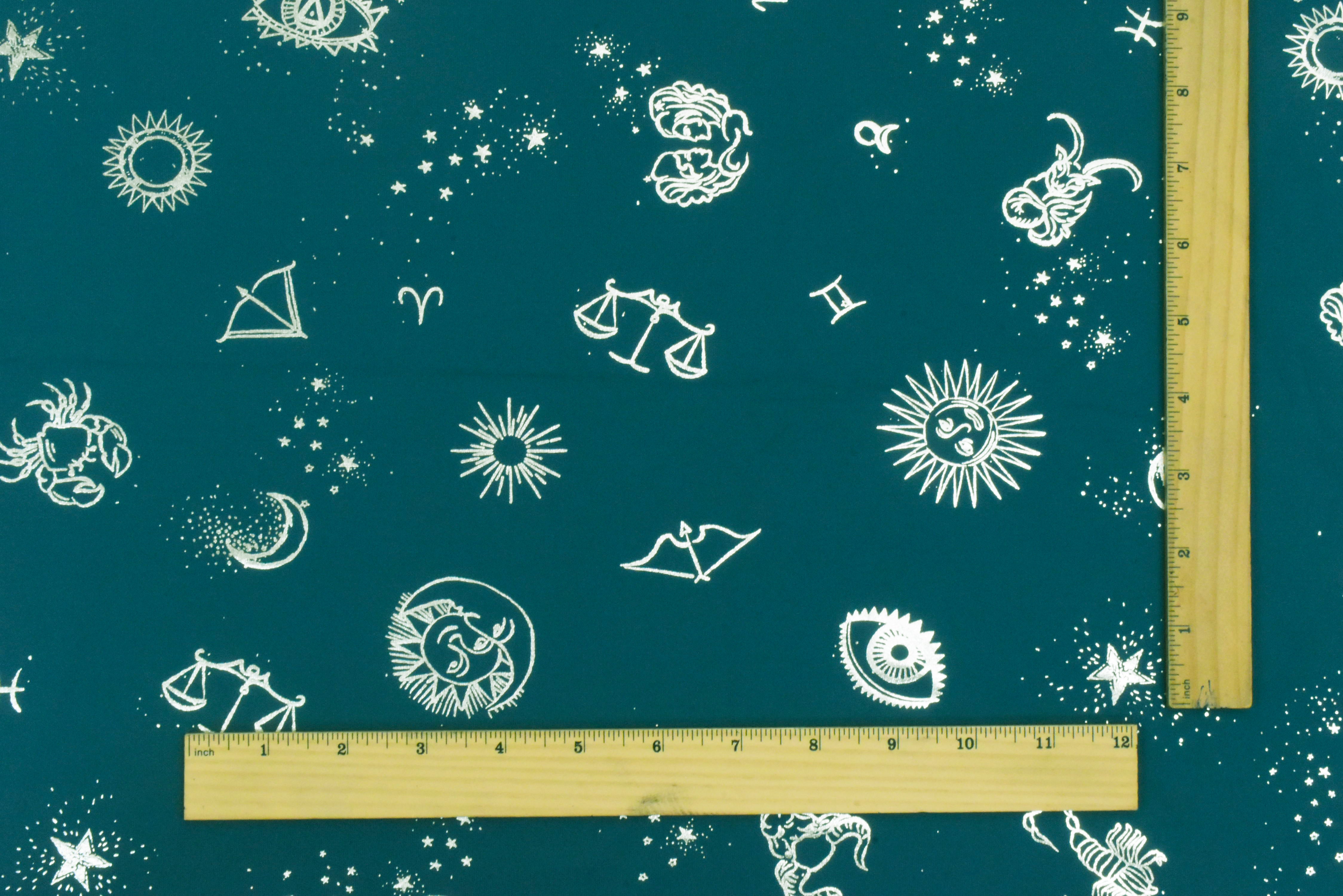 Teal-Silver Famous Maker Zodiac Print Stretch Tricot Swimwear Knit Fabric