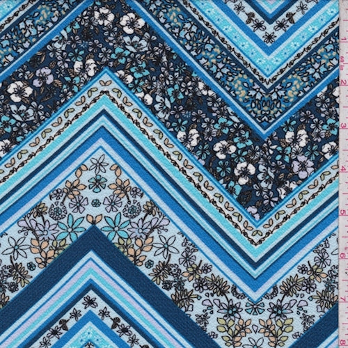 Teal/Turquoise Multi Deco Chevron Pebble Crepe Fabric