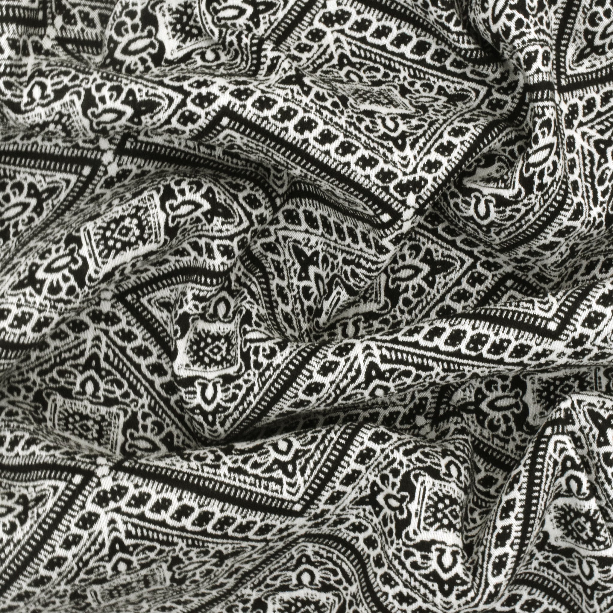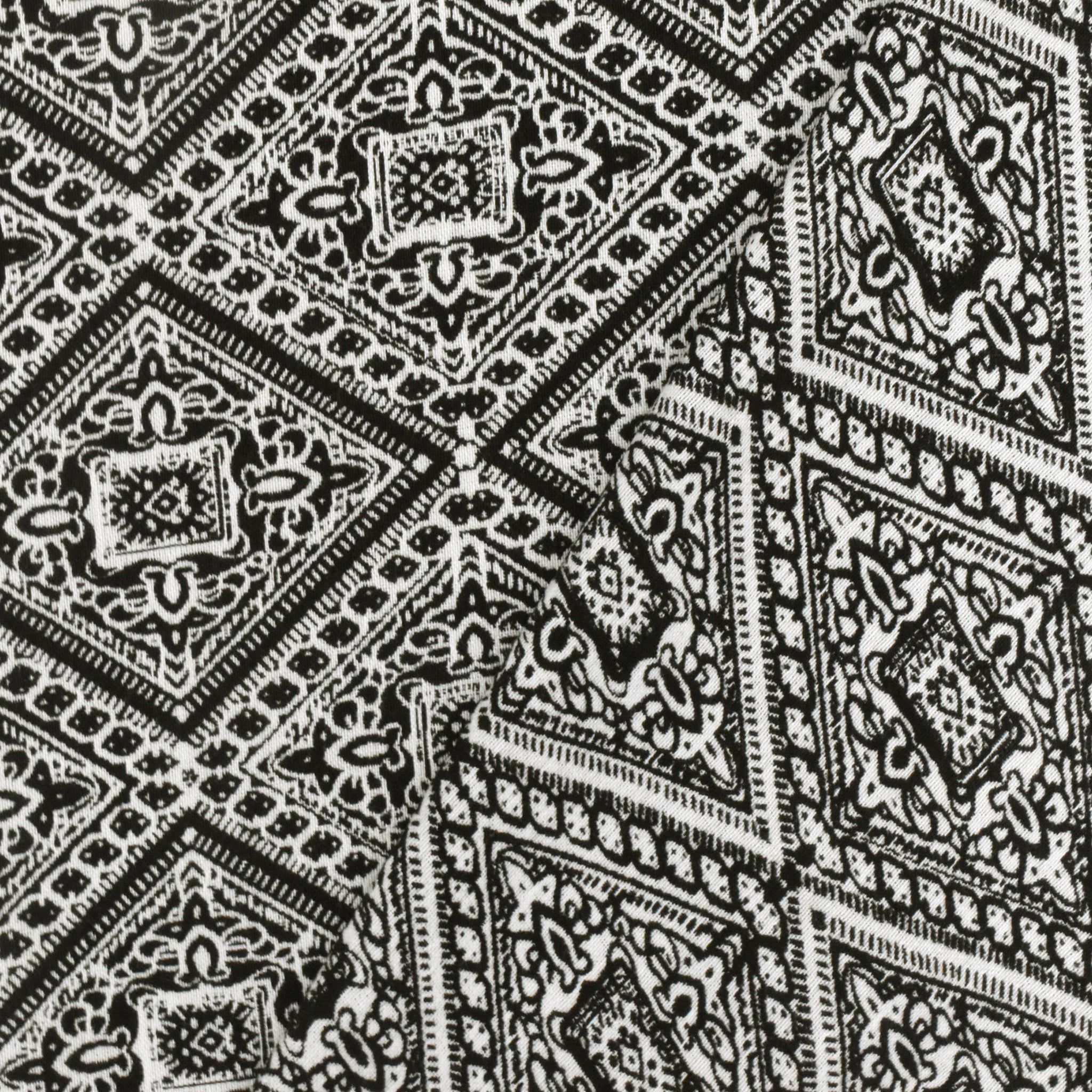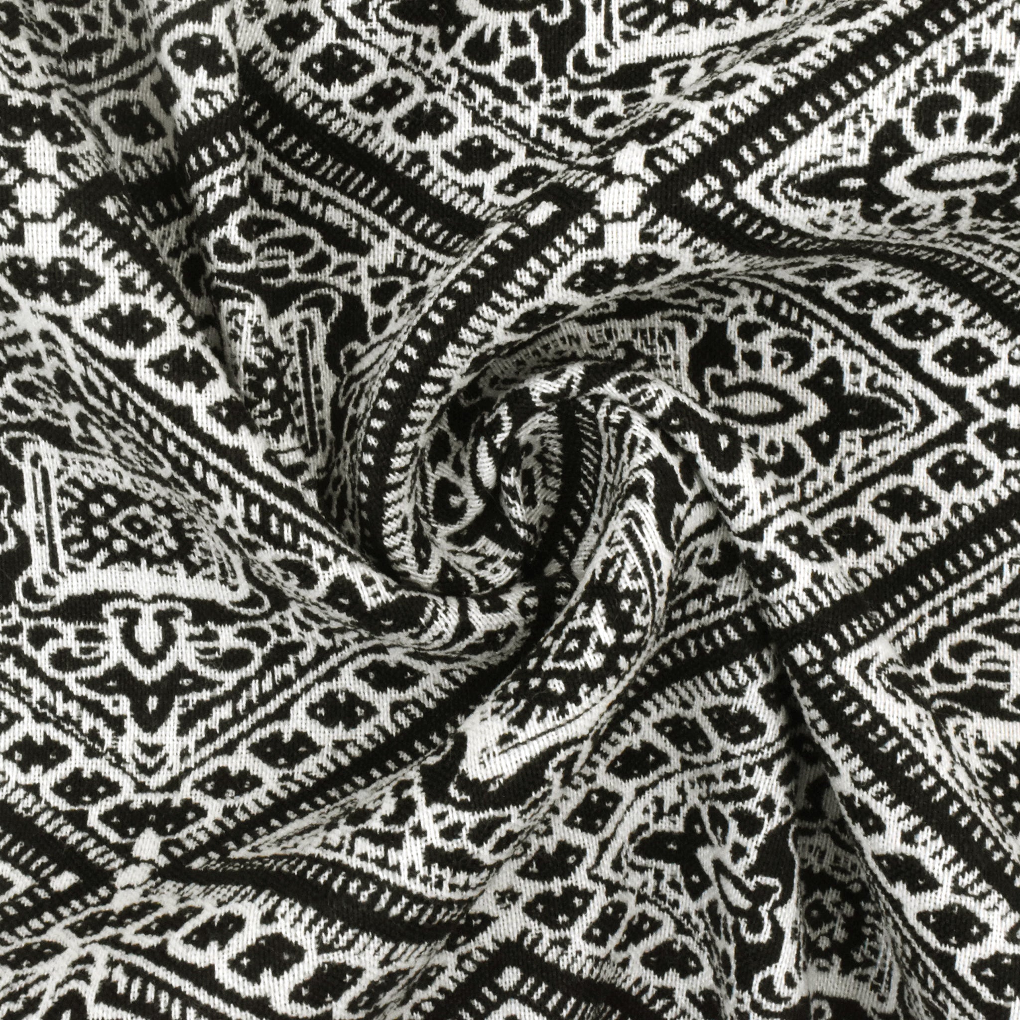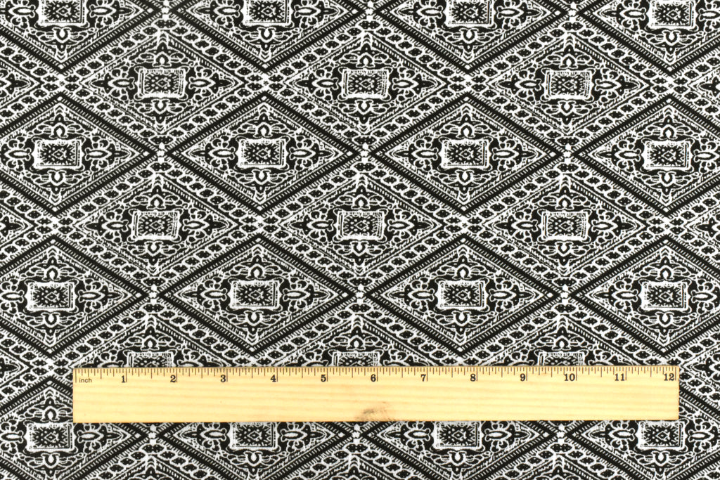 True Black-White Famous Designer Fancy Tile Stretch Damask Fabric