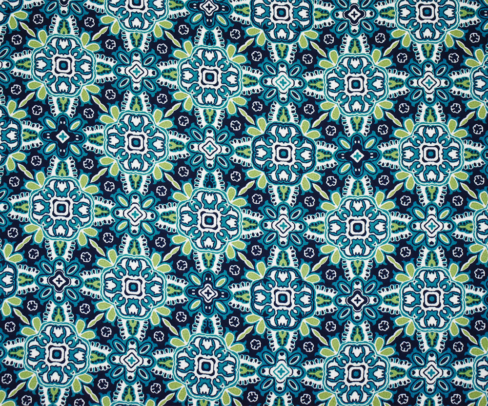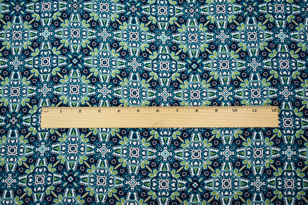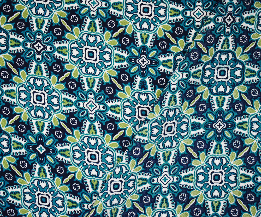 Turquoise-Green-Blue Polyester Floral Tile Printed Momie Georgette Fabric
