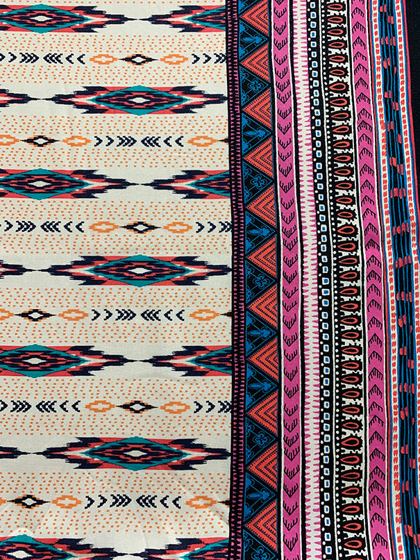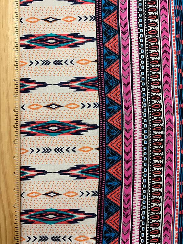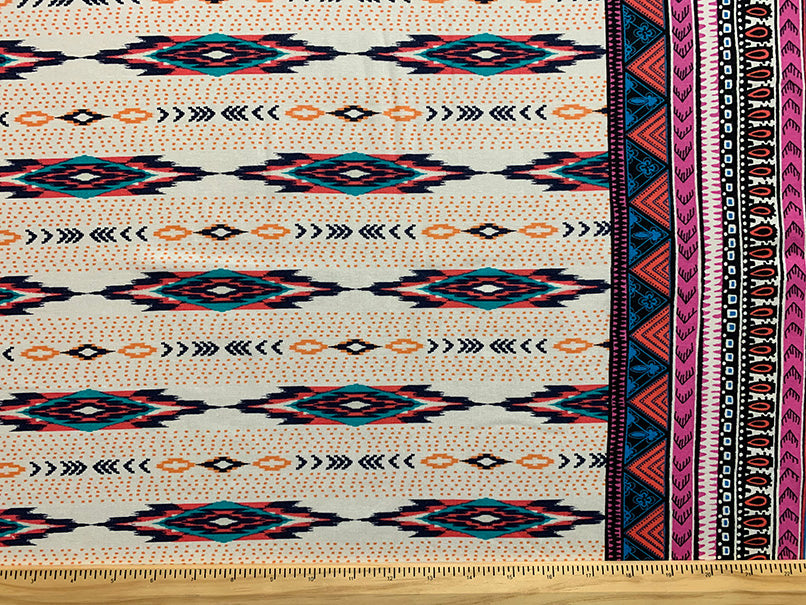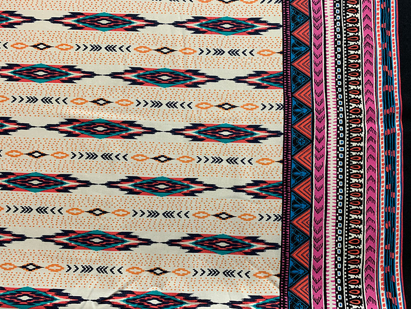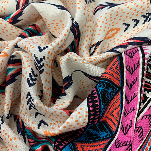 White and Pink Multi Stripe Print Rayon Challis Fabric