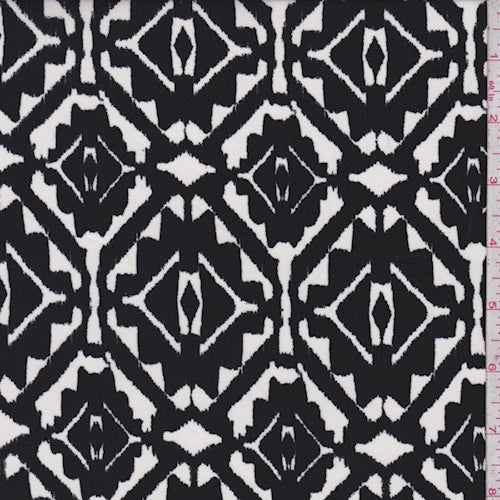 White/Black Inca Diamond Challis Fabric