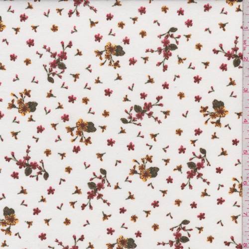 White/Gold Mini Floral Double Brushed Jersey Knit Fabric