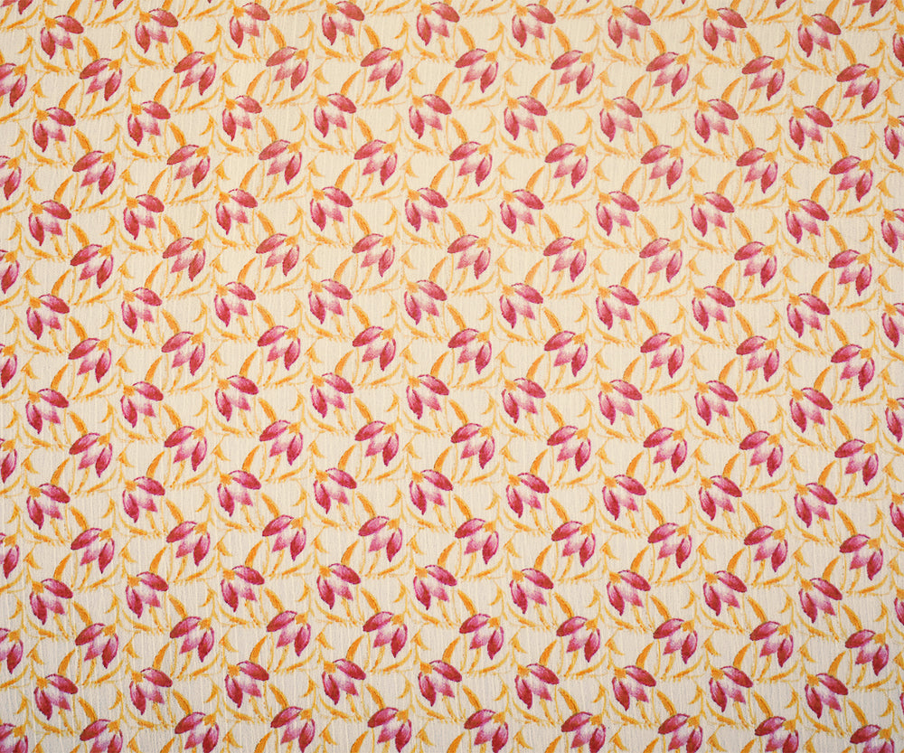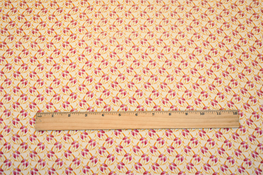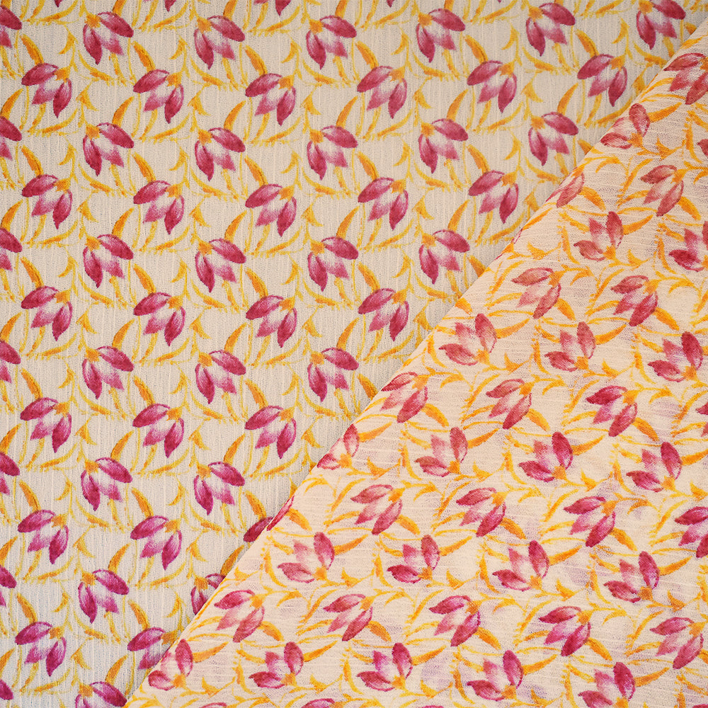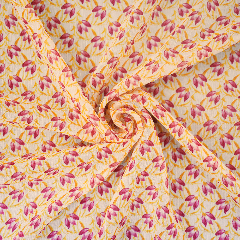 Yellow-Pink-Ivory Floral Printed Poly Yoryu Chiffon Woven Fabric