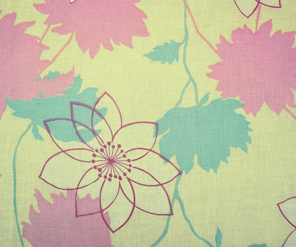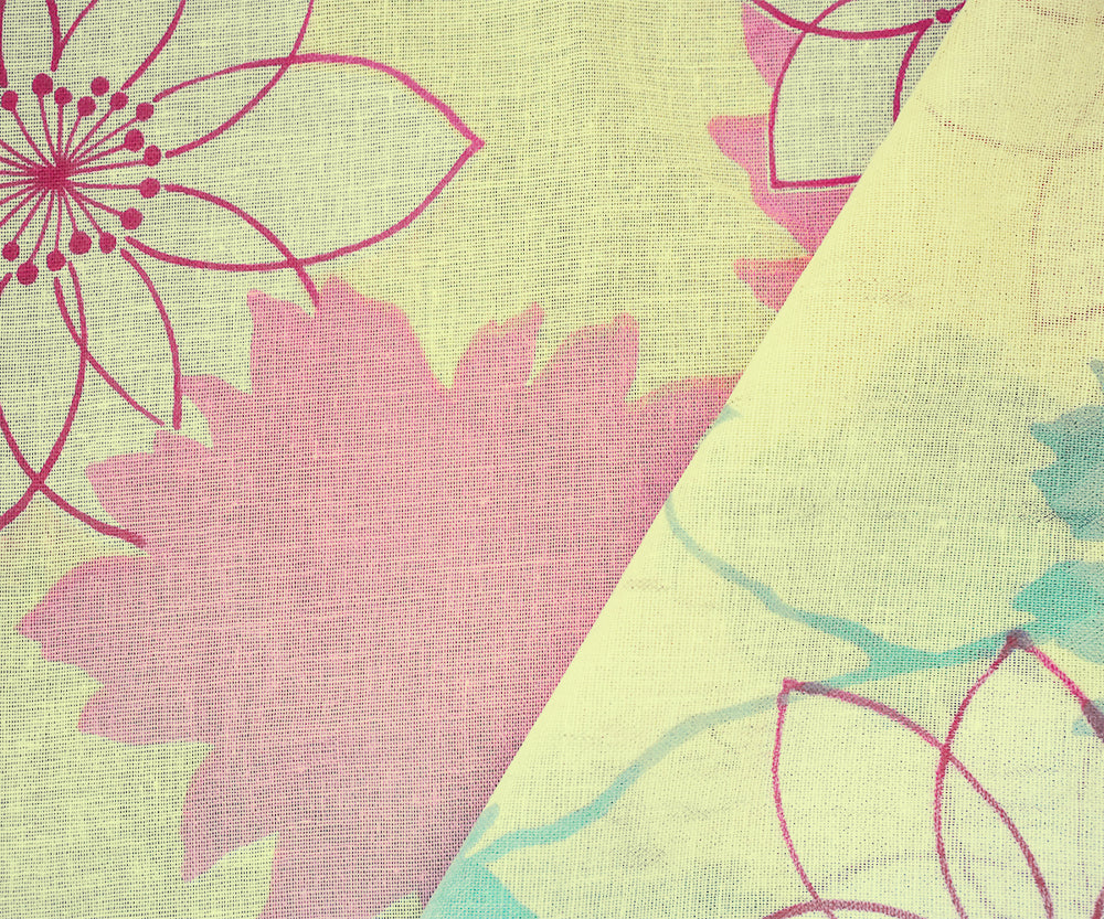 Yellow-Pink Multi Floral Printed Cotton Gauze Woven Fabric