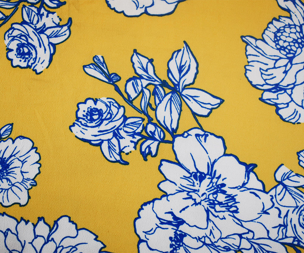 Yellow-White Floral Printed Stretch Poly Spandex Ghost Crepe Woven Fabric