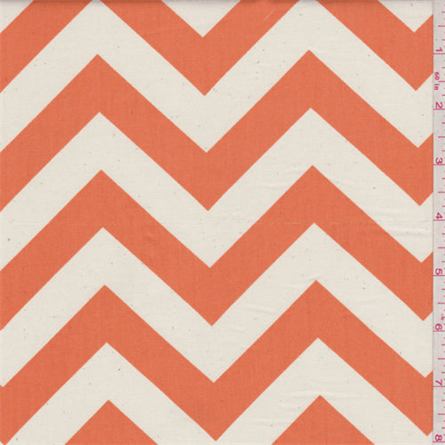 Zig Zag Orange/Ivory Poplin Fabric